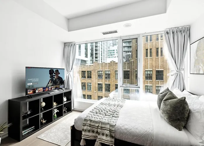 O Modern Studio Retreat In Downtown Toronto de 51 m² está localizado a aproximadamente 1 km de Aquário de Ripley do Canadá e a caminhada de 11 minutos de Torre CN. Os hóspedes podem usar Wi-Fi tanto para fins de negócios quanto de lazer.